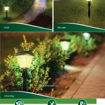 Đèn cắm cỏ Solar là một dòng đèn chiếu sáng ngoài trời sử dụng năng lượng mặt trời để hoạt động, không cần kết nối với nguồn điện lưới. Nhờ vào tấm pin mặt trời tích hợp, thì đèn có thể hấp thụ ánh nắng vào ban ngày và tự động phát sáng vào ban đêm. Đây là một giải pháp chiếu sáng tiết kiệm điện năng, thân thiện với môi trường và dễ dàng lắp đặt ở nhiều những không gian như sân vườn, lối đi, công viên hoặc khu nghỉ dưỡng.